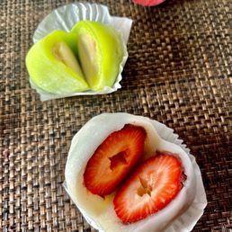 The strawberry mochi is so good, I could've just gotten a whole box of just those. Drove across the island from Kona to get mochi since we weren't gonna have time to make it any other day of our trip. The shop is small, staff is nice, and they have a lot of different mochi for you to choose from. We ordered the mochi a day in advance and scheduled it for EOD pickup. Turns out they won't have your mochi ready if you swing by hours early (oops), but they were super accommodating and still able to make/pack us our mochi. We did have to wait since we came earlier than our pickup time, but the strawberry mochi was worth the wait. Overall happy with everything we got-- the strawberry mochi was the best and I'm still thinking about it half a year later.